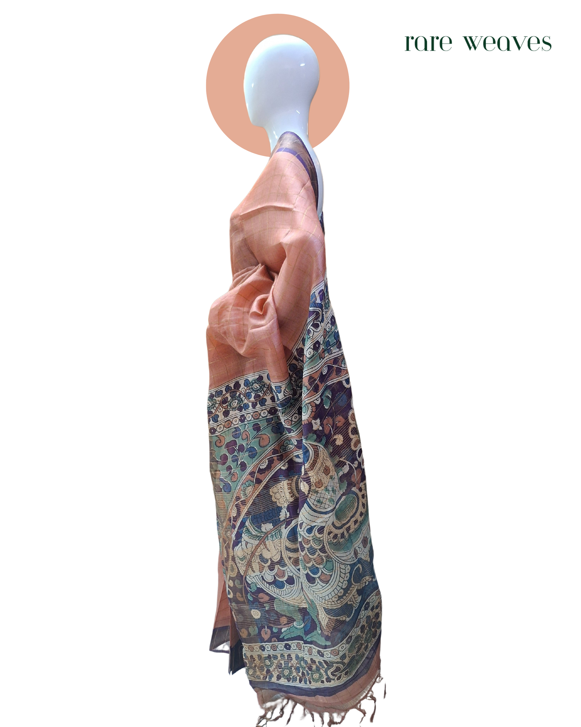 Buy Handmade Gachi Tussar with Zari Border and Hand Kalamkari Saree at Best Price only on Rare Weaves.