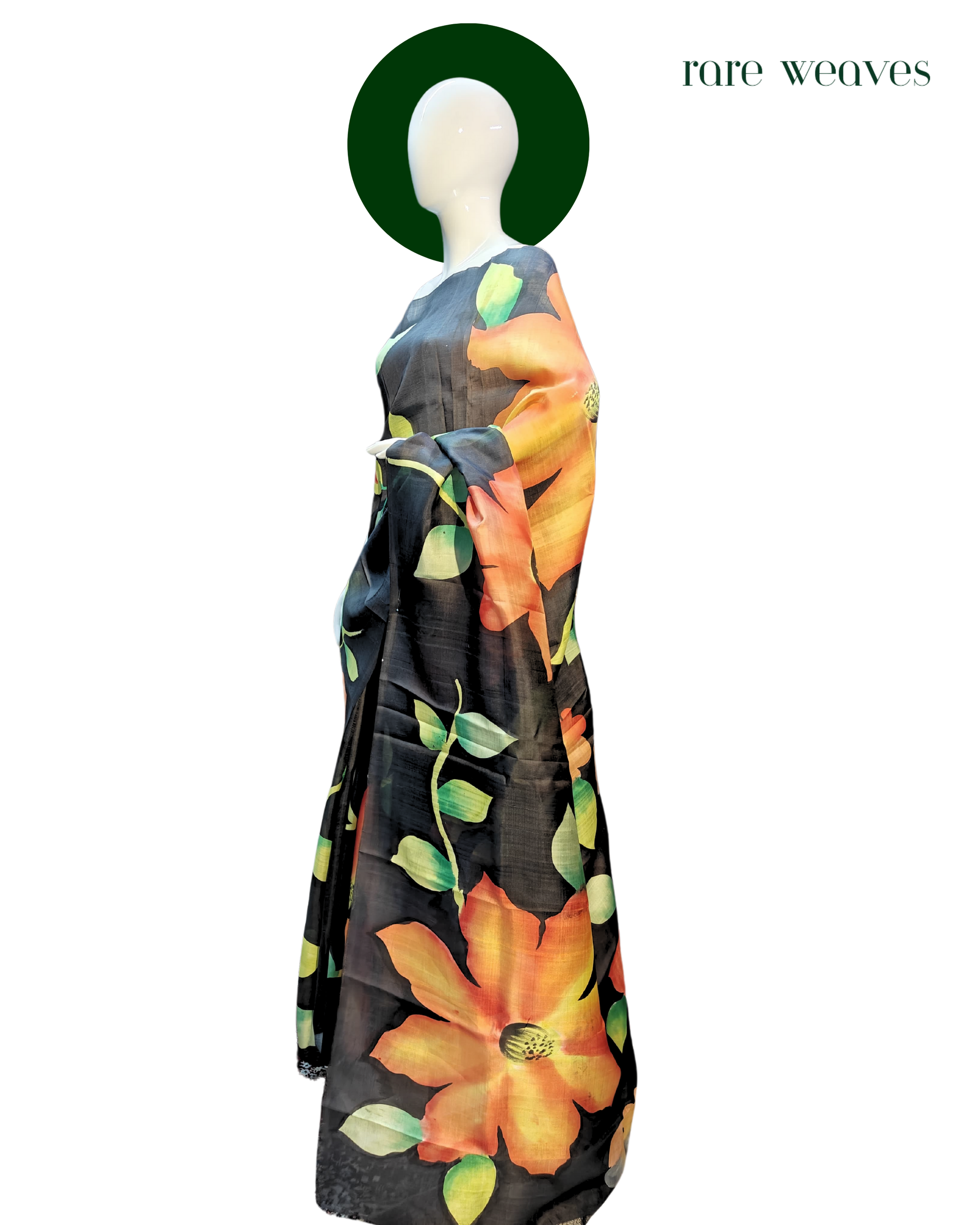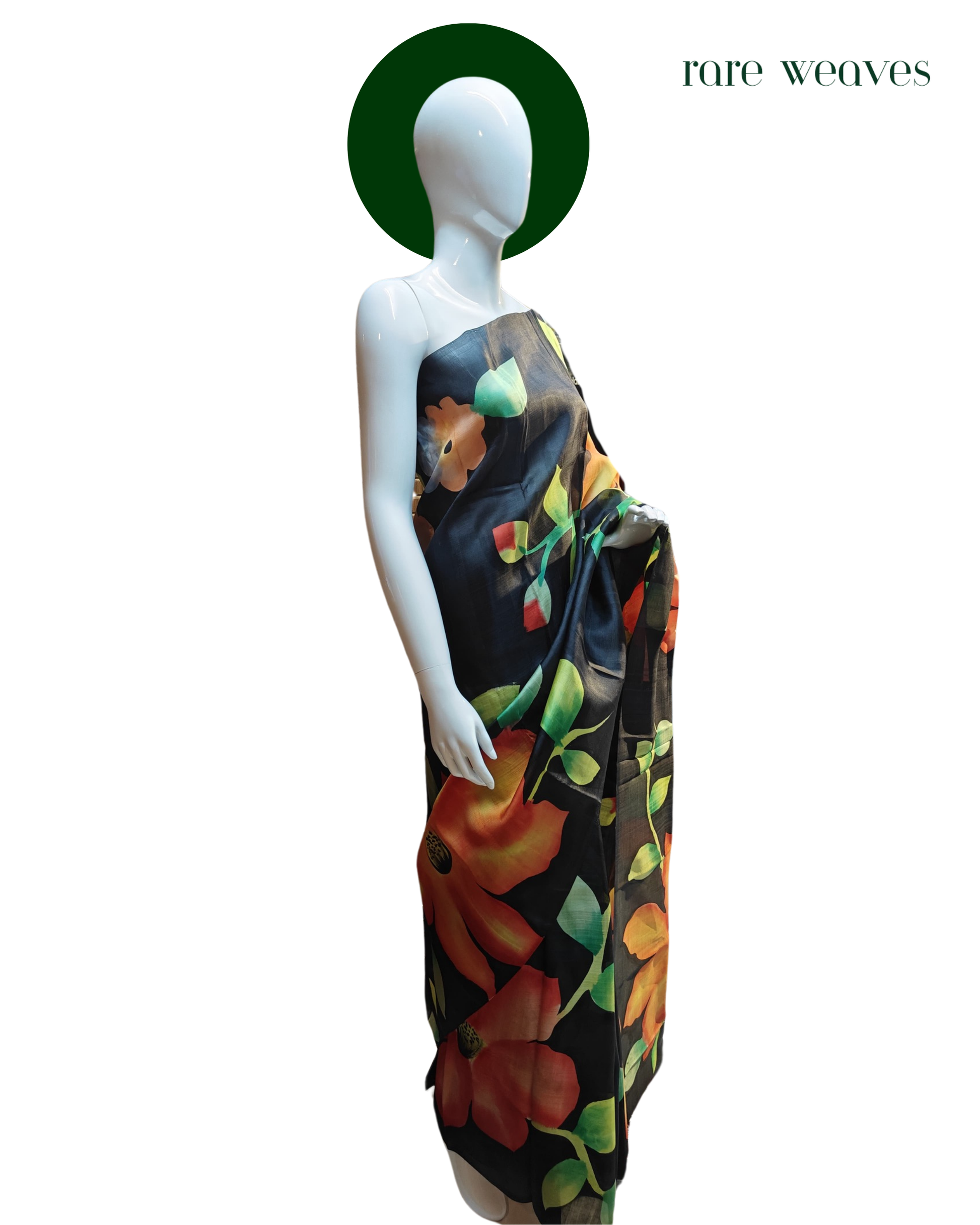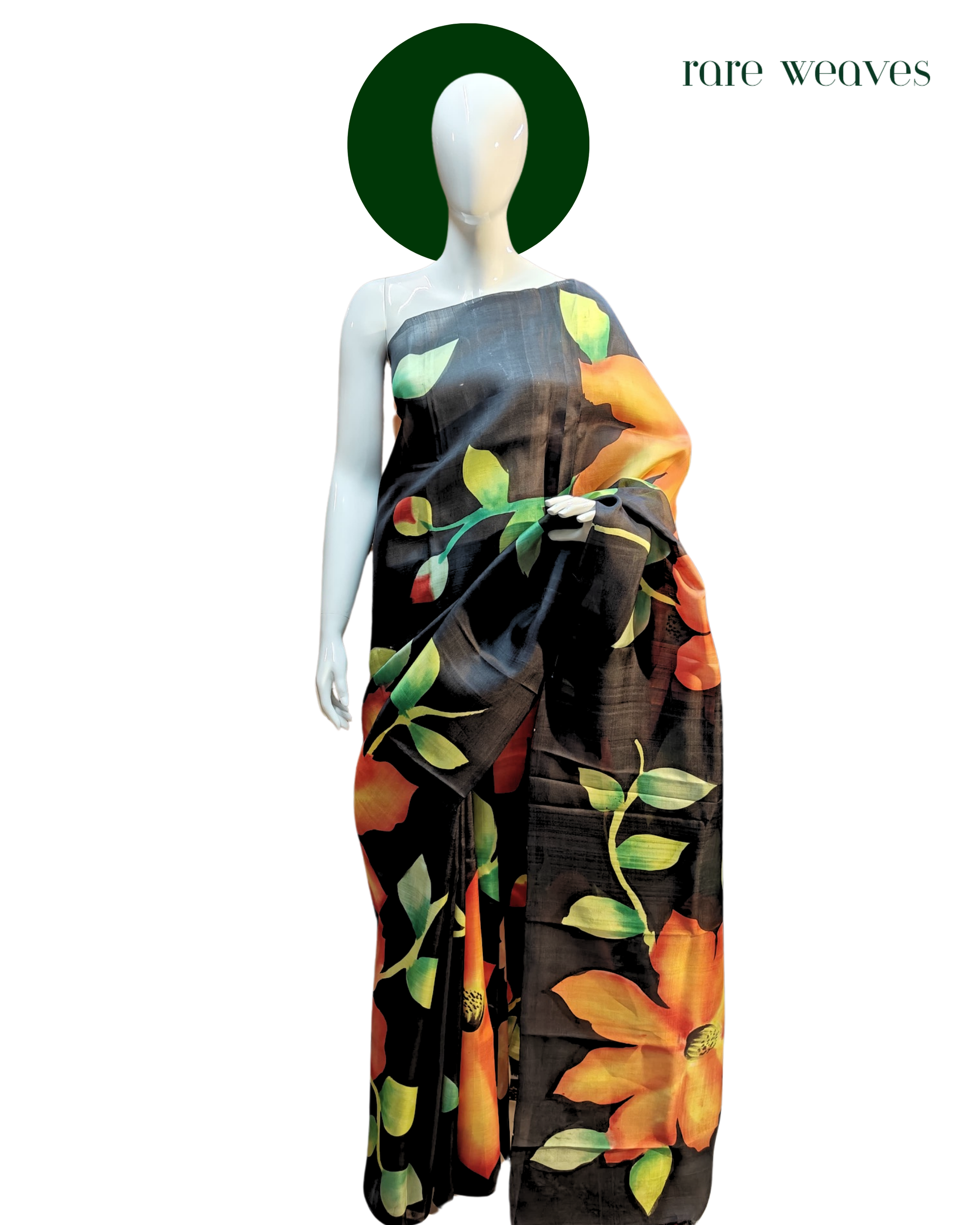 Dry clean only. Store the saree in a muslin cloth away from sunlight in a dry environment. Air the textile every few months.