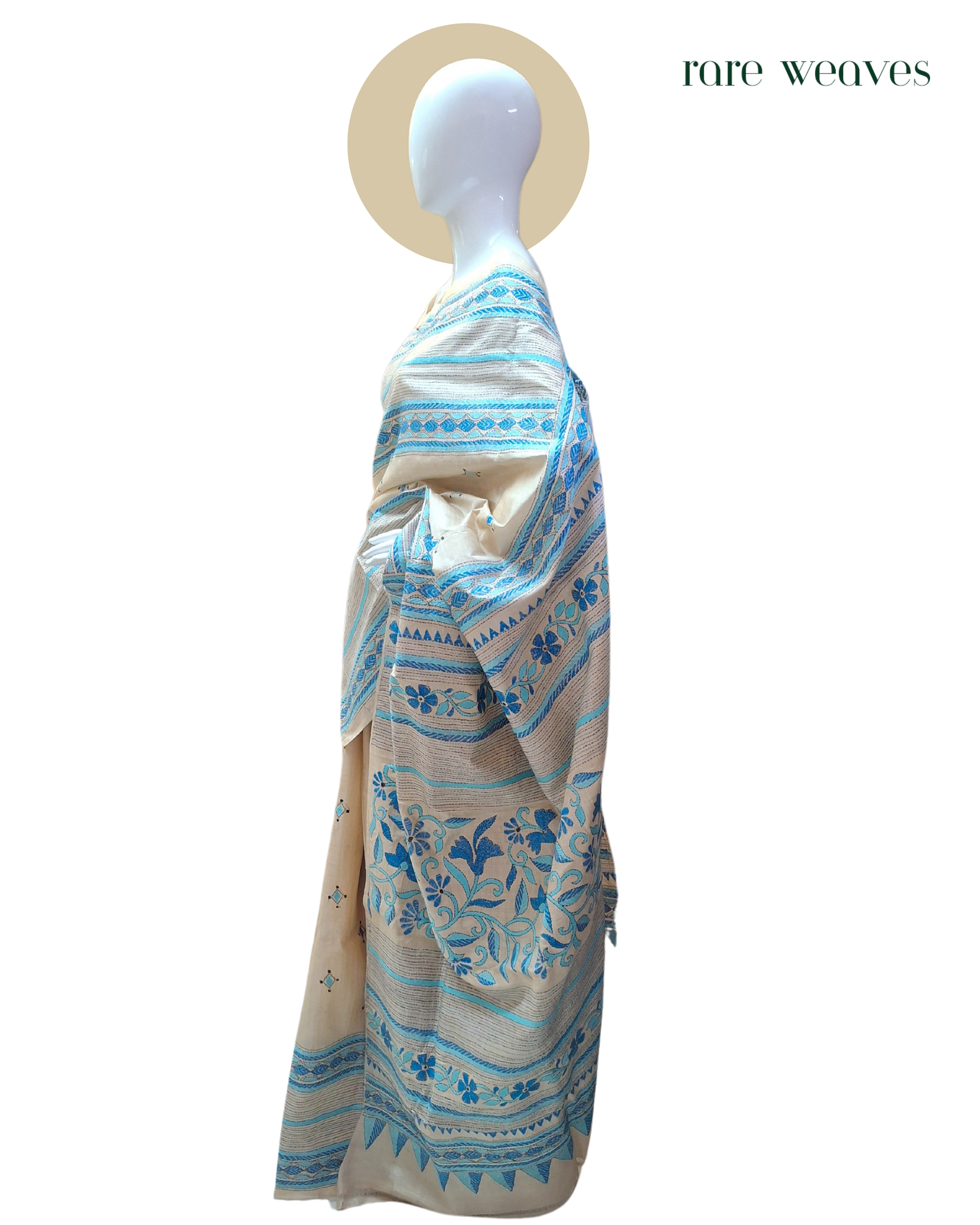 Buy Kantha Stitch on Gachi Tussar Silk Saree at Best Price only on Rare Weaves.