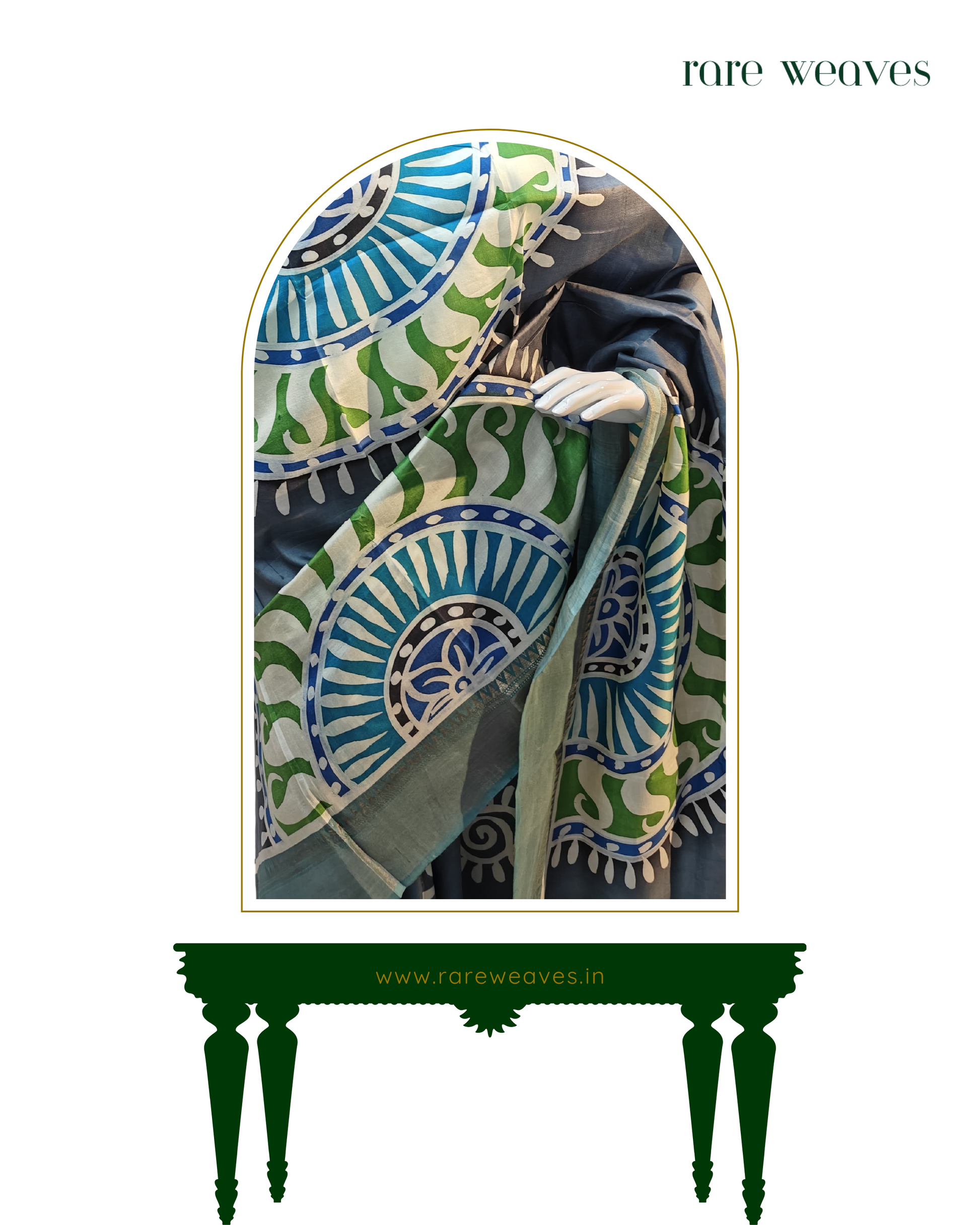 Buy Handmade & Handpainted Katan Silk with Zari Border Saree at Best Price only on Rare Weaves.