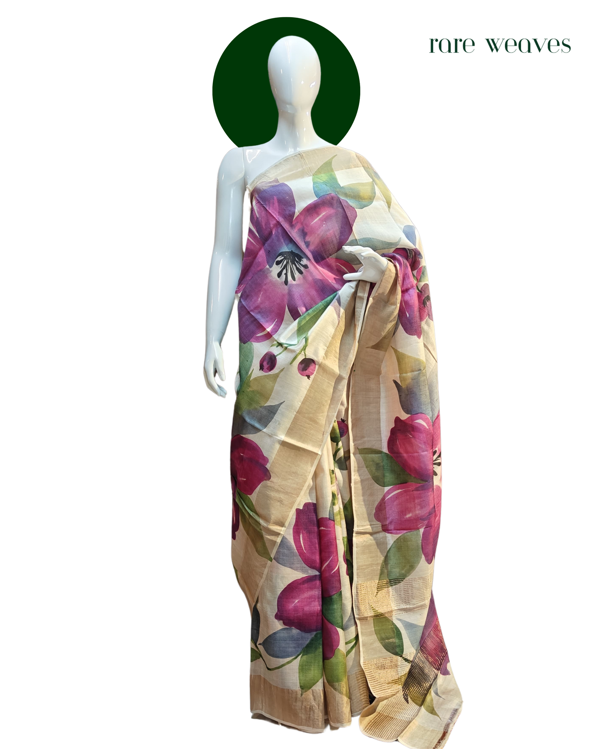 Buy Handmade & Handpainted Pure Tussar with Zari border at Best Price only on Rare Weaves.