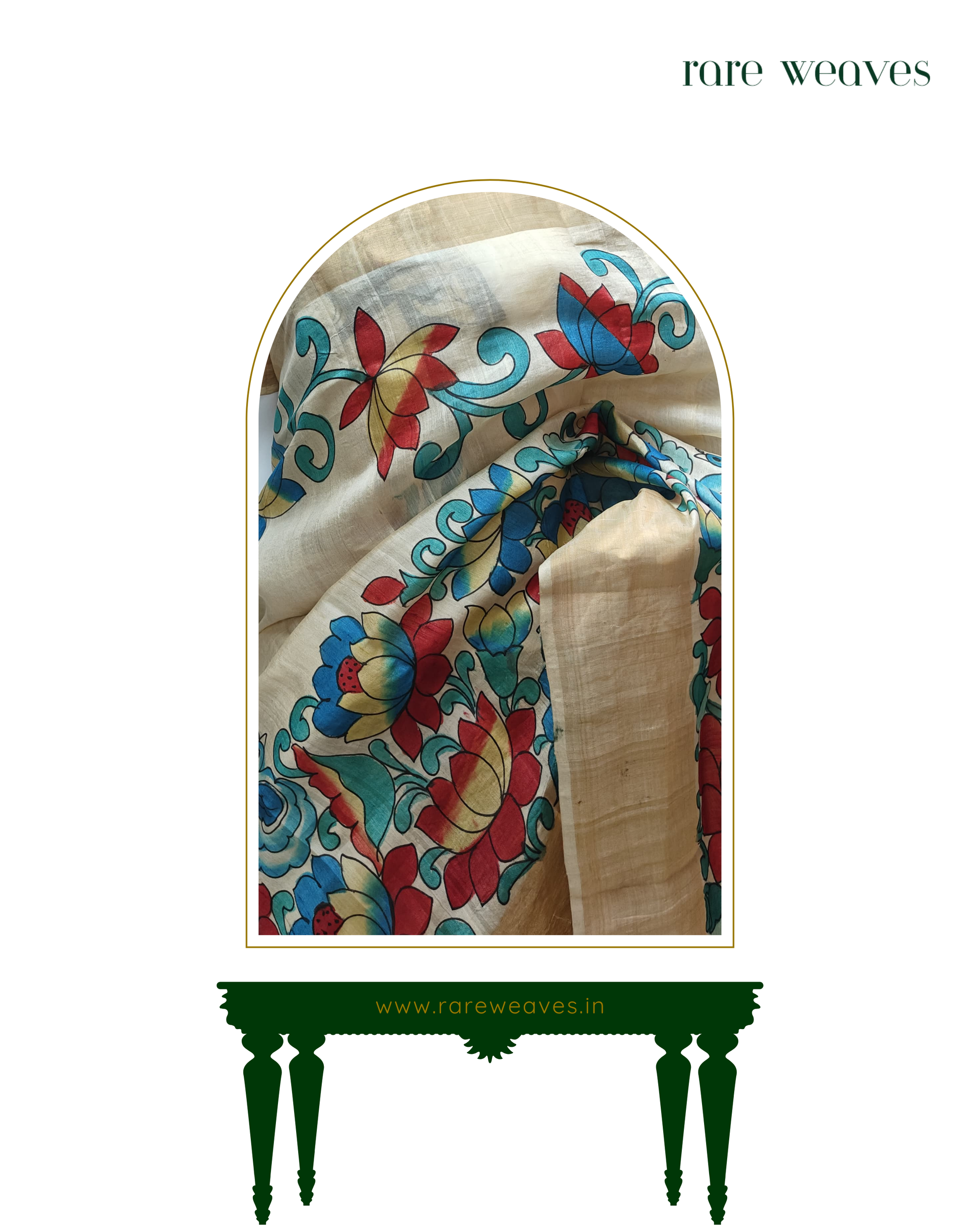 Buy Handpainted Tussar with Zari Border Saree at Best Price only on Rare Weaves.